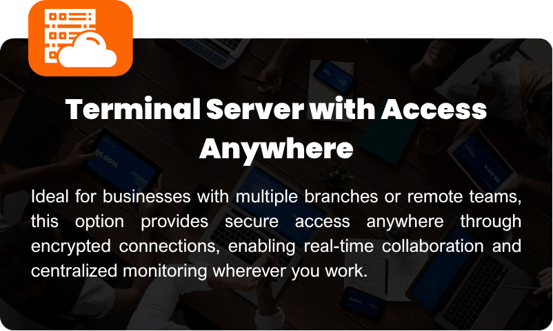 Yes! With the Access Anywhere option, your authorized employees can connect securely to your company’s server from any location, perfect for hybrid work setups or when traveling.