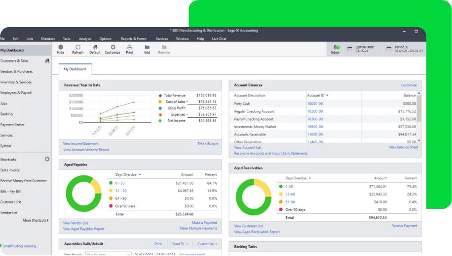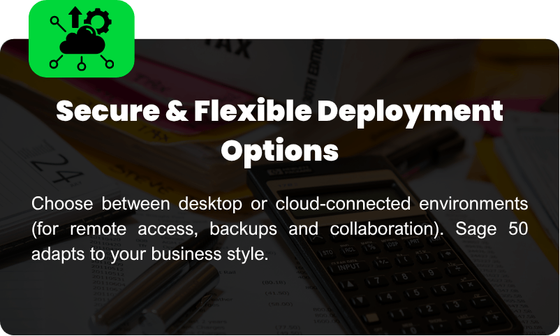 Sage 50 US combines power, flexibility, and precision to help you manage your business finances with confidence. From cash flow and inventory to reporting and project costing, it delivers all the essential tools you need to stay organized, compliant, and in control of your growth.