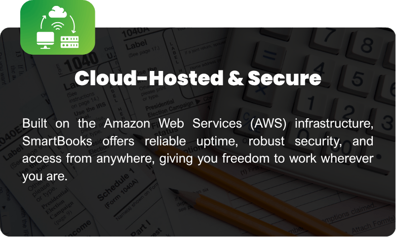 Absolutely. SmartBooks is cloud-hosted on AWS, enabling secure access via web browser from any location, at any time.